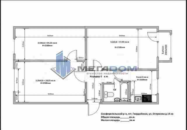 • Полное расположение Республика Крым, Симферопольский р-н, Гвардейское сельское поселение, пгт. Гвардейское, ул. Острякова, 14